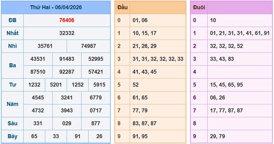 ⚡ Đề ra 06, 3 càng về 406 đề về đầu 0 đuôi 6 – tổng đề 5 số cuối GĐB là 23