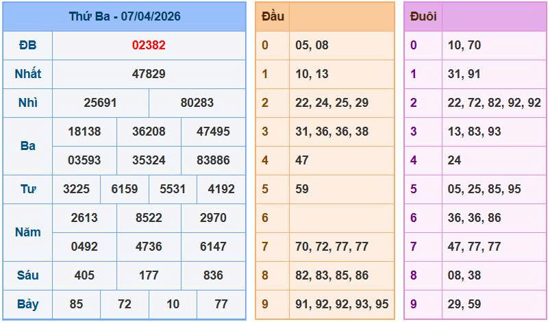 Đề ra 82, 3 càng về 382 đề về đầu 8 đuôi 2 – tổng đề 5 số cuối GĐB là 13