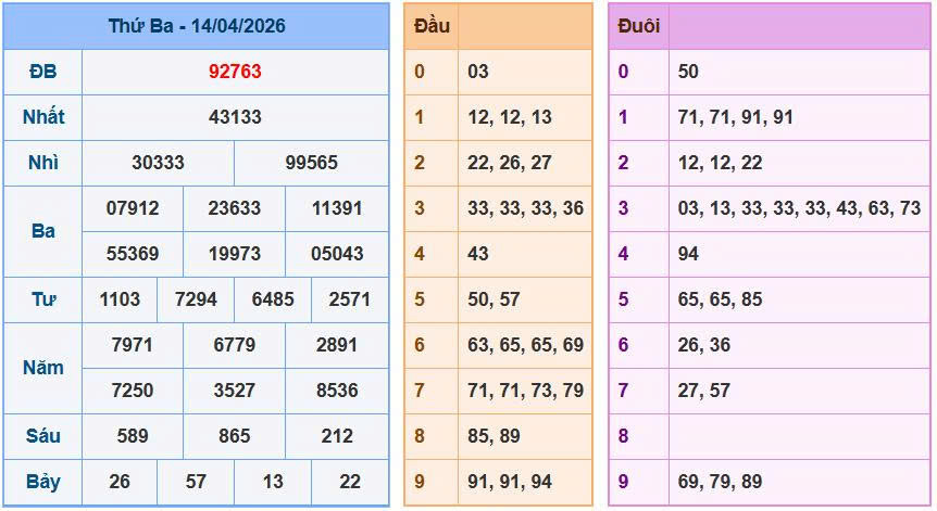 Trước khi đi vào chốt số, việc xem xét lại các dữ liệu vừa nổ ngày 14/04 là vô cùng quan trọng để tìm ra quy luật rơi của các con số.